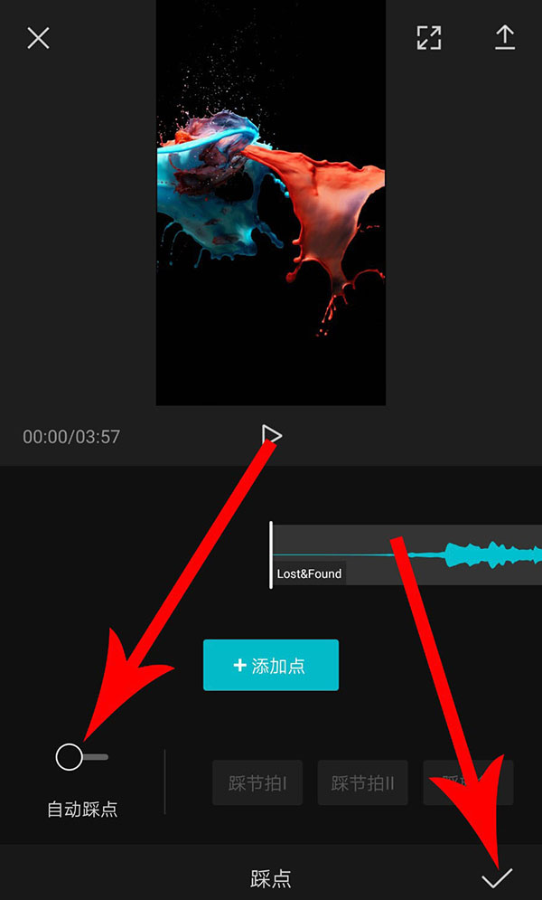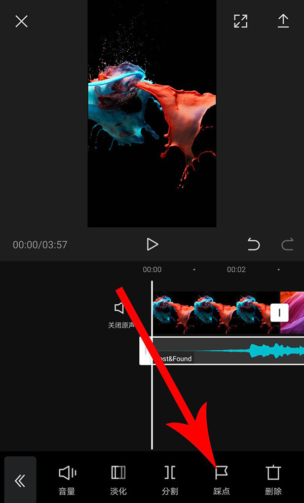 9、选中音频素材以后,点击“踩点”