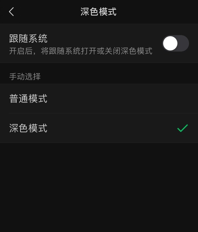 ▼深色模式可不跟随系统,拥有了独立开关。另外,深色模式进行了优化(颜色变深一点)。此前微信只有跟随系统打开或关闭深色模式。