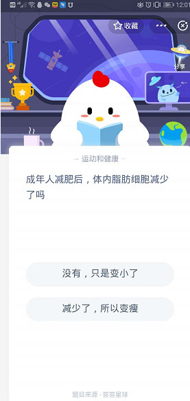 以上便是脚本之家小编为大家分享的"成年人减肥后体内脂肪细胞减少了吗 蚂蚁庄园6月21日答案"的全部内容,希望能够帮到你,脚本之家持续发布更多资讯,欢迎大家的关注。