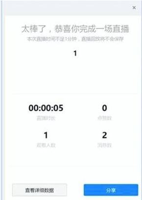 1、老师在钉钉直播结束后,会出现直播的时长和观看人数等数据,点击查看详细数据;