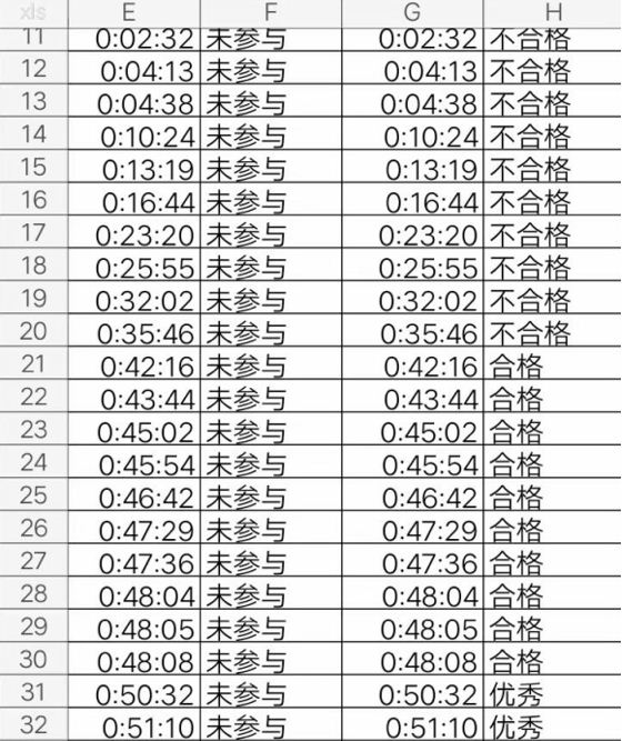 3、打开导出的数据,可以看到学生的观看时长。