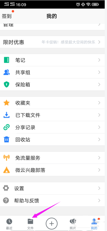 1、打开手机腾讯微云,登录个人账号进入,点击下方的“文件”