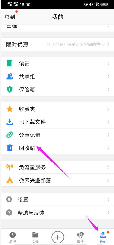 5、这个时候返回到“我”中的“回收站”