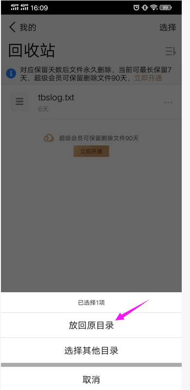 8、选择“放回原目录”