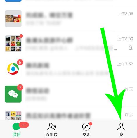 2、打开微信消息列表点击“我”,打开个人中心点击“设置”。