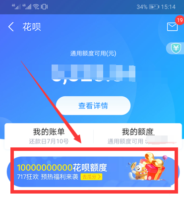 3、进入花呗界面,点击“717狂欢去瓜分”。