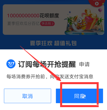 6、订阅开抢提醒,点击“同意”设置成功,会收到提醒点击开抢即可。