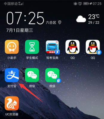 1、先打开手机,点击桌面上的支付宝。
