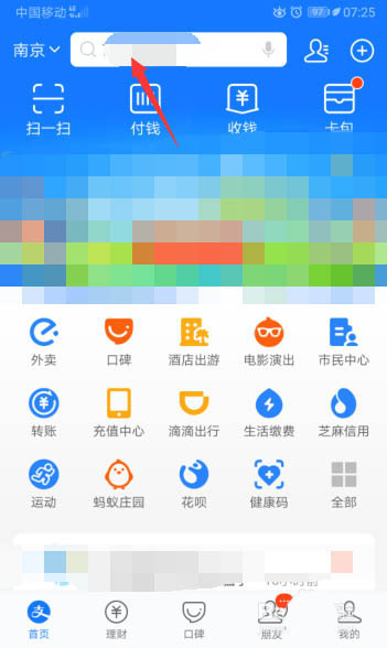2、进入支付宝,点击搜索栏。