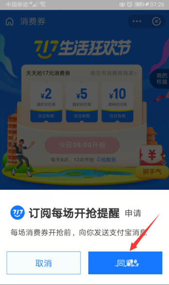 支付宝717生活狂欢节百亿消费券怎么领取呢?现在还不能领取,但是可以先订阅,可以领取的时候会有提示,下面我们就来看看详细的教程。