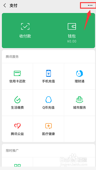 点击支付右上角的三个点,如下图所示