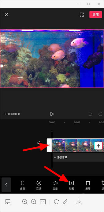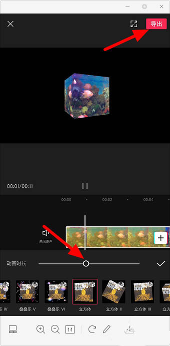 6、拖动进度条上的小圆点,能调整动画时长,好了点击“导出”。