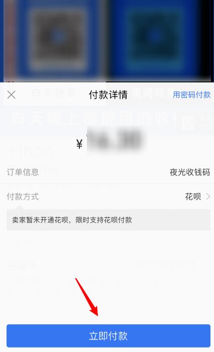 点击后,选择下方的立即支付,即可申请夜光收款码。