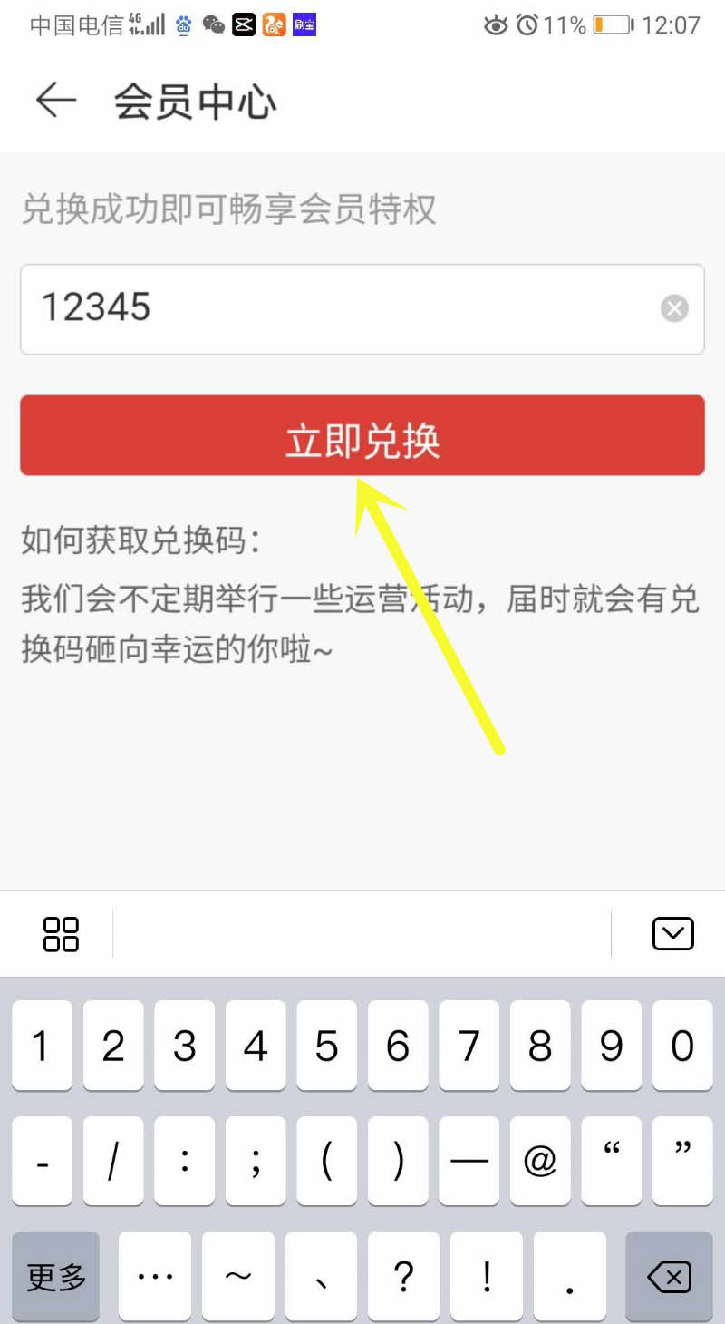 5、输入兑换码