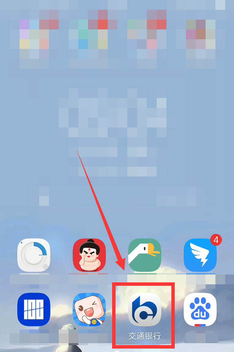 1、首先,我们需要打开手机的桌面,在桌面中找到“交通银行”app的图标,并点击进入主界面。