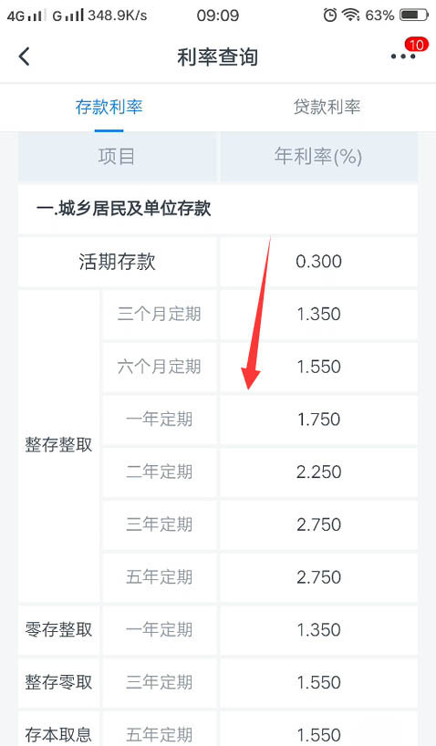 5、最后,选择以后我们即可在下方的界面中查看存款利率。