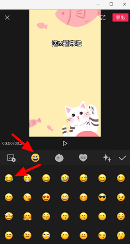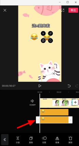将时间轴拉到想要添加表情的位置,然后点击“贴纸”。