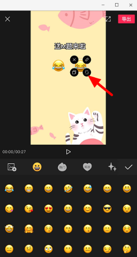 拖动表情右下角标志,可以缩放表情,点击右上角标志可编辑表情,左下角标志可复制,左上角可取消添加表情。
