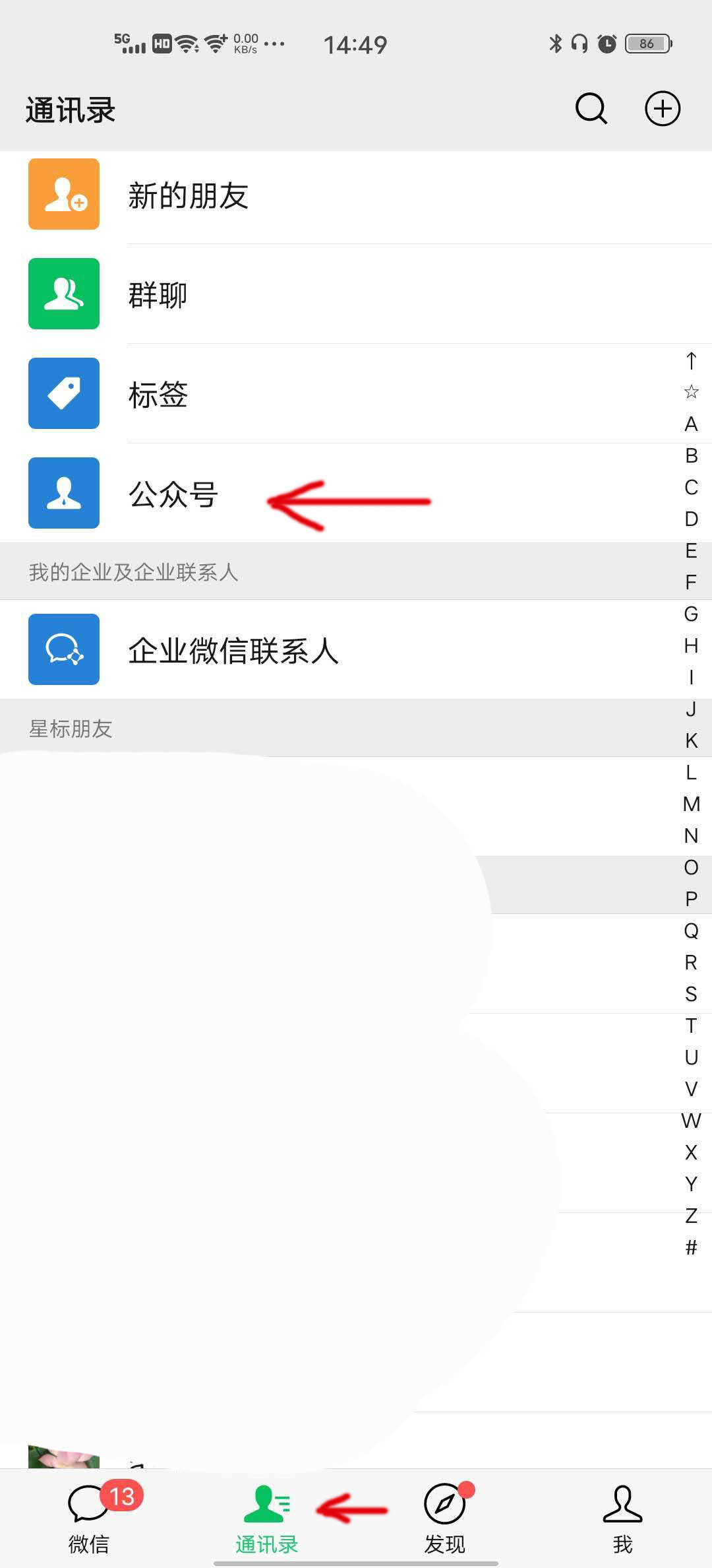 2、在这里我们选择箭头指向位置,打开公众号。