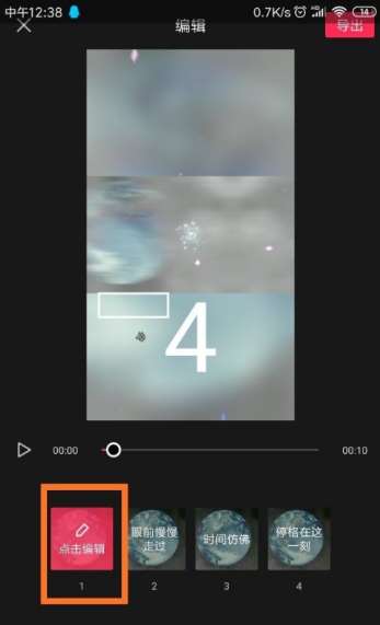进入文本编辑页面后,点击“文本1”,选中文本1以后,“点击编辑”。