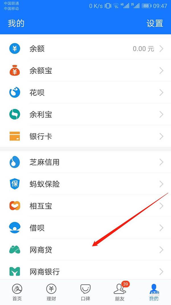3、“我的”主页,页面往下拉,找到“网商贷”入口。