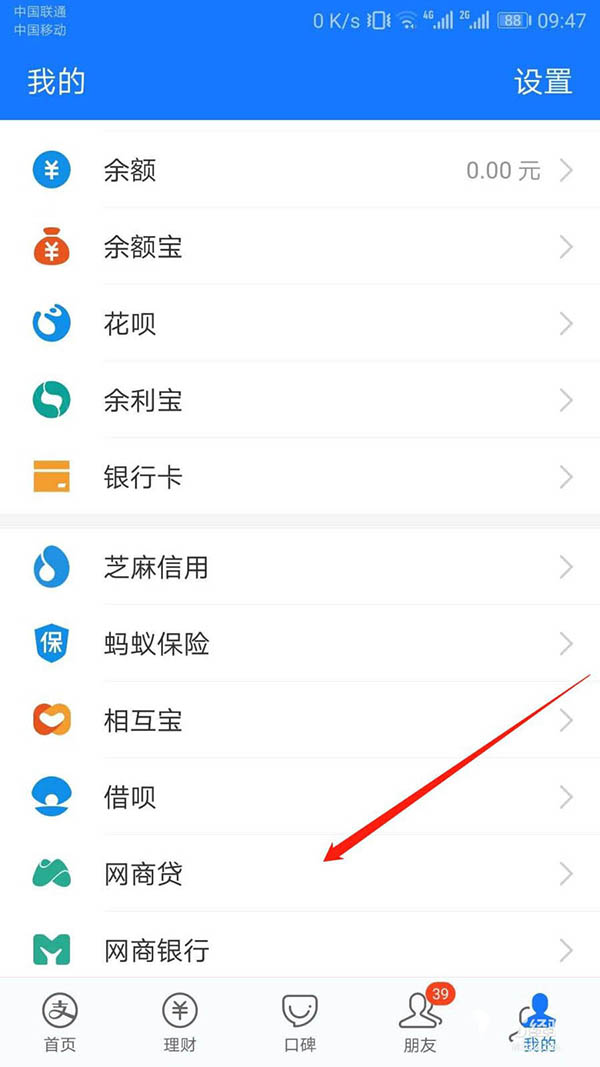 3、在”我的“页面下拉找到“网商贷”入口。