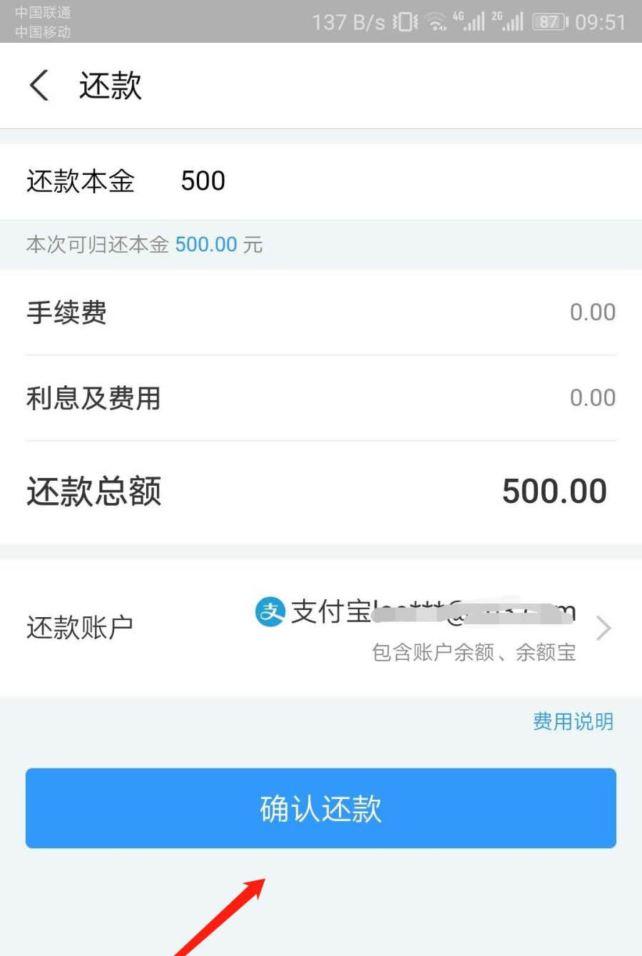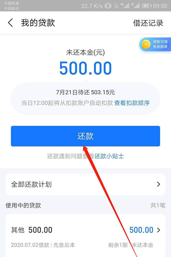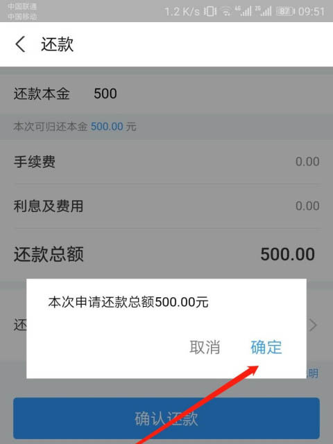 7、确认还款金额,还款成功。