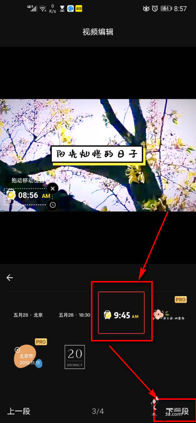 6、选择任意一个时间图标,点击下一段即可。