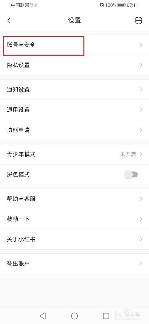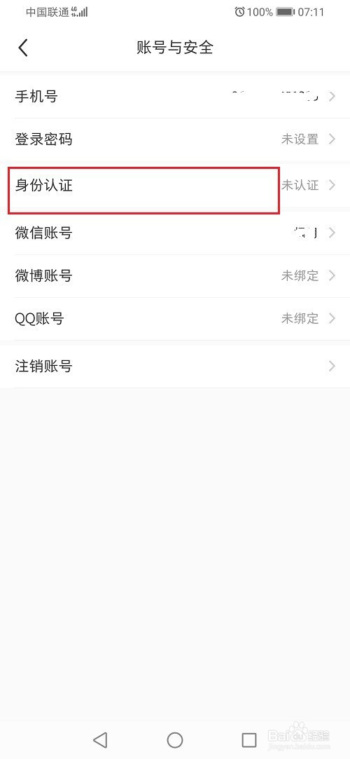 第二步进去设置之后,点击账号与安全,选择身份认证,如下图所示: