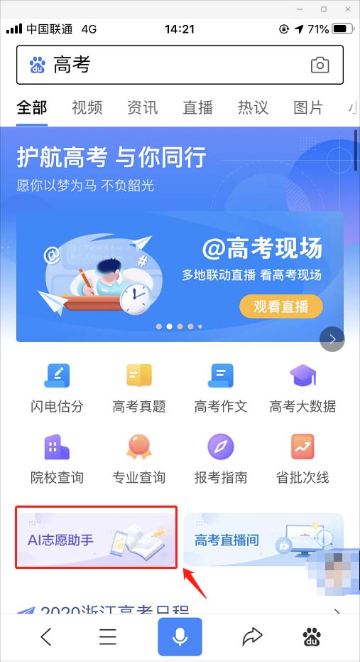 2020高考临近尾声,同学们对于高考的成绩和名次也十分关心,百度AI志愿助手可以预估成绩和名次,AI志愿助手可以进行预测分数线、预测名次线、院校查询和推荐高校等功能。那么AI志愿助手如何预测高考名次?下面我们就来看看详细的操作过程。