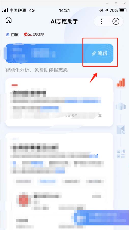 3、在AI志愿助手主页中,点击“编辑”按钮。