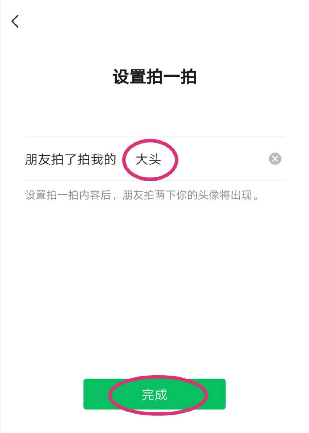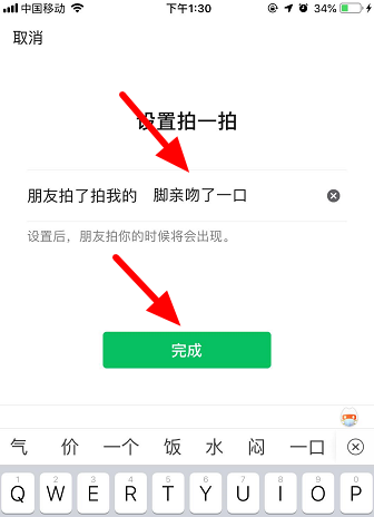 3、进入设置拍一拍页面后,可以在后面手动输入【文字】。