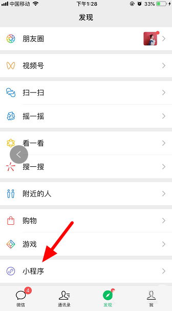 1、打开微信,点击“发现”。