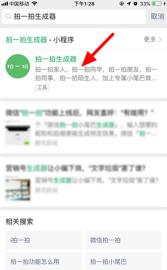 3、搜索并进入“拍一拍生成器”。