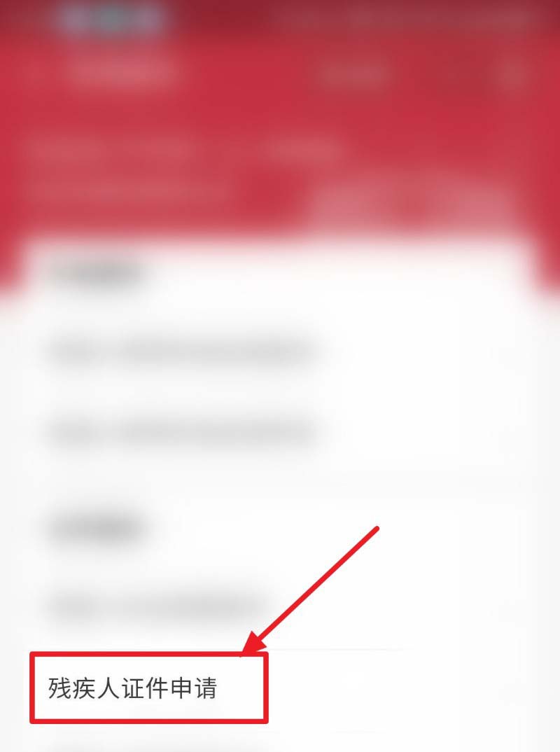 5、然后点击“残疾人证件申请”,如图所示: