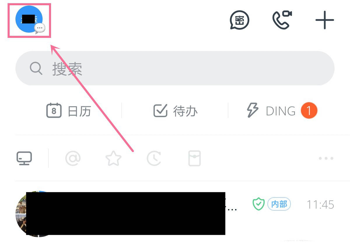 2、在钉钉主页中,点击个人头像,进入名片页面。如图所示