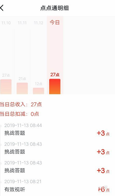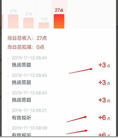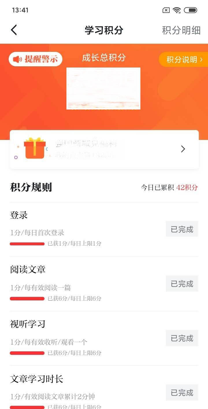 5、每天可以通过挑战答题、有效阅读、有效视听来获取积分。每完成一次挑战答题获得3分,完成一次有效阅读获得6分,完成一次有效视听获得6分。
