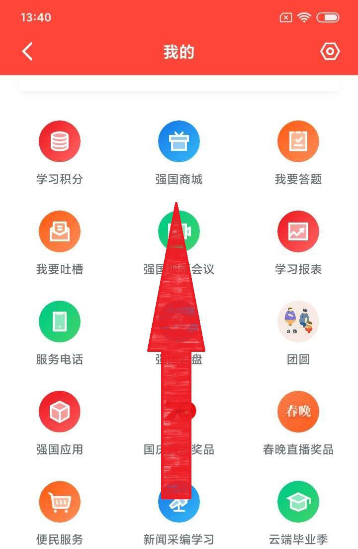 2、进入到“我的”页面,点击“强国商城”就可以查看自己的积分情况