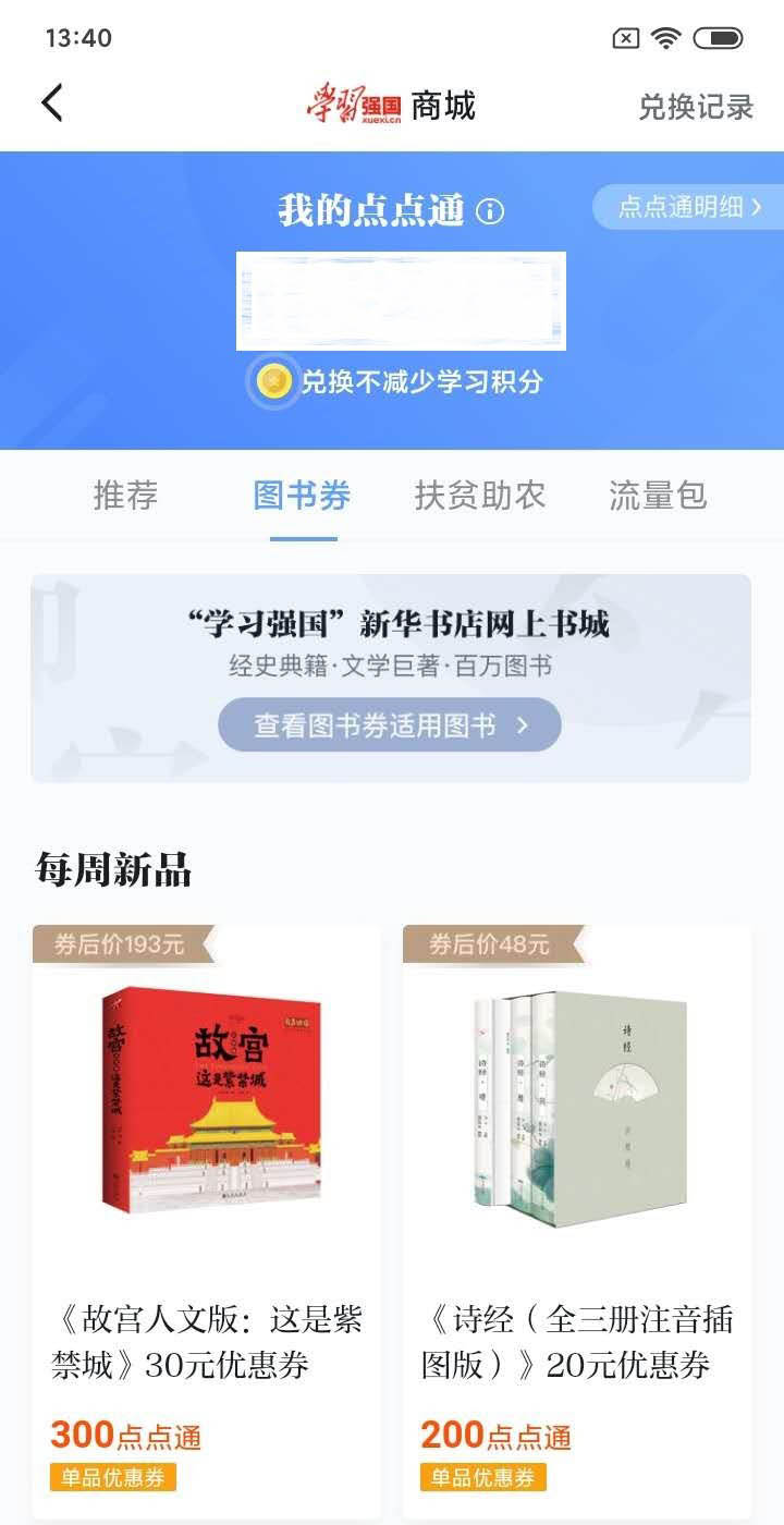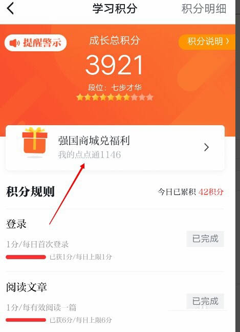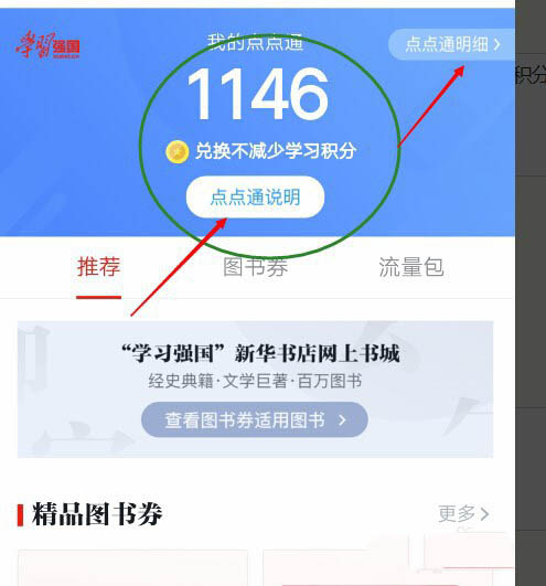 1、登陆学习强国,进入积分界面,在学习强国商城可查看已有的点点通积分。