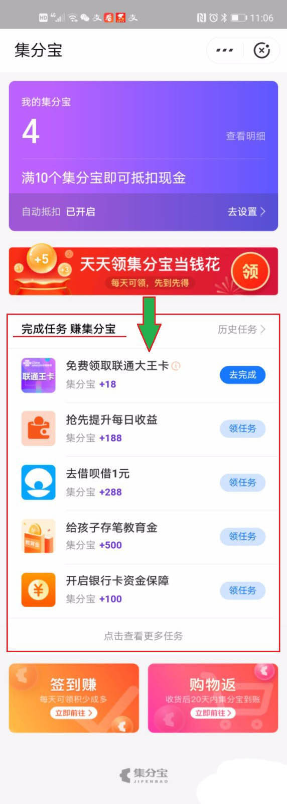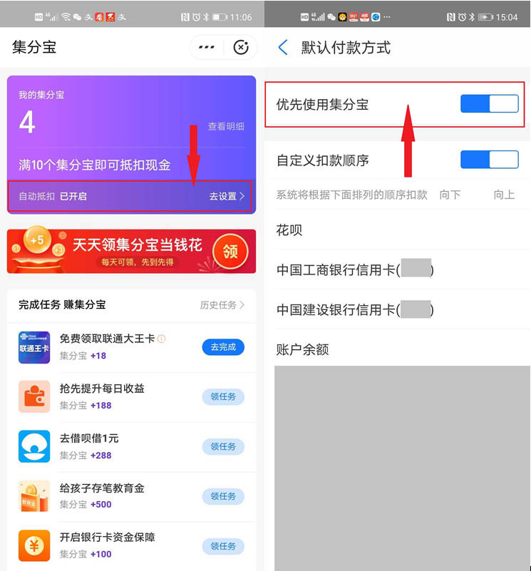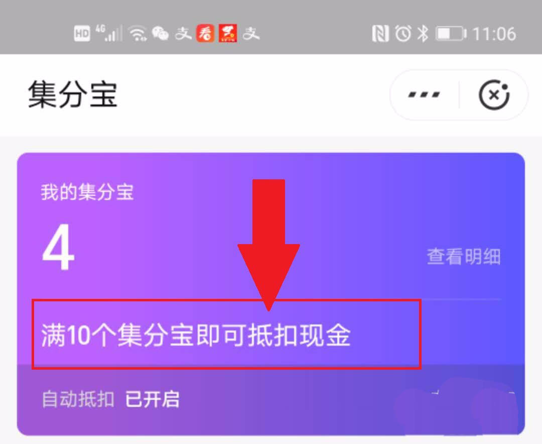 2、满10个集分宝后,支付宝付款时,包括购物消费、信用卡还款、缴水电费等,均优先抵减集分宝。