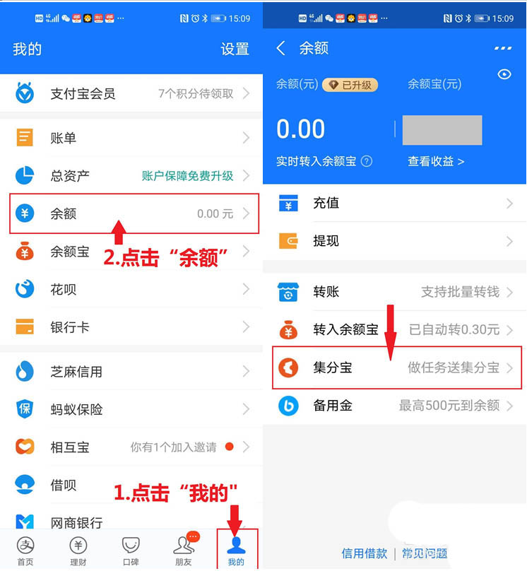 打开支付宝,点击“我的",点击“余额”,点击“集分宝”就可以查看到集分宝的余额。