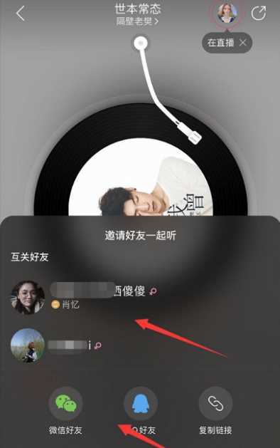 随后,在弹出的列表中有个一起听,点击“邀请好友”