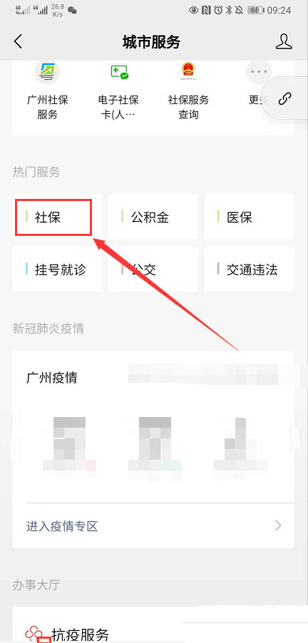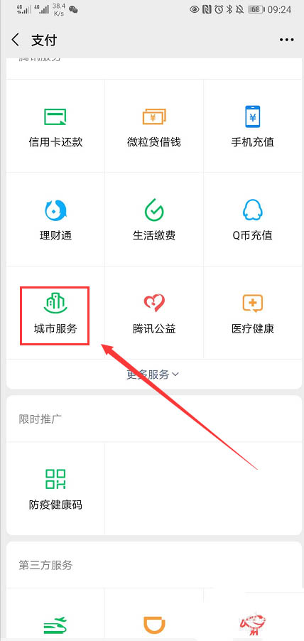 3、进入到【支付】页面后,点击页面的【城市服务】选项
