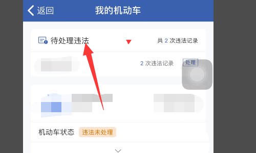 5、进入我的机动车界面后,点击待处理违法选项,即可看到摩托车的违章情况