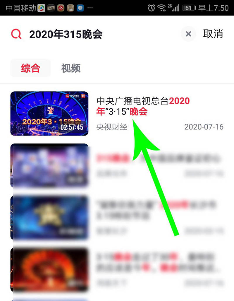 4、单击晚会标题“中央广播电视总台2020年“3·15”晚会”。