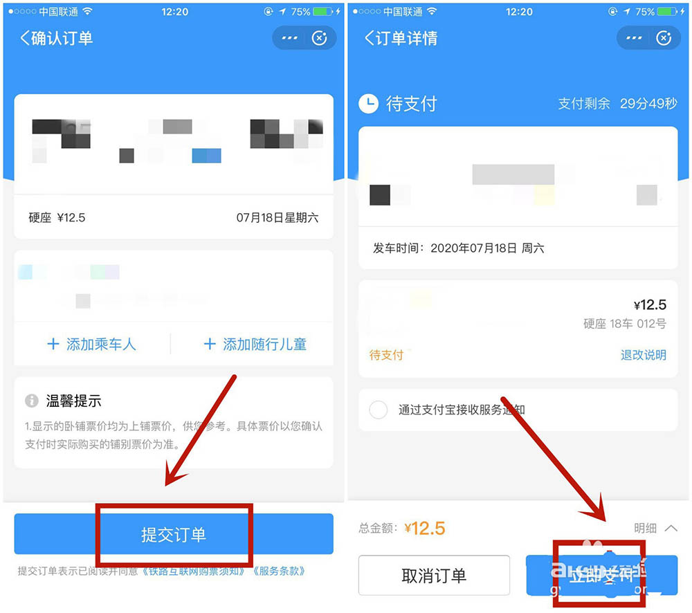5、添加上需要出行的人员信息后点击下方的确认乘客。