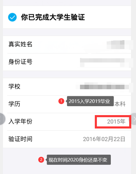 6、进入我的大学信息面板【已经毕业】显示身份没有过期完成。
