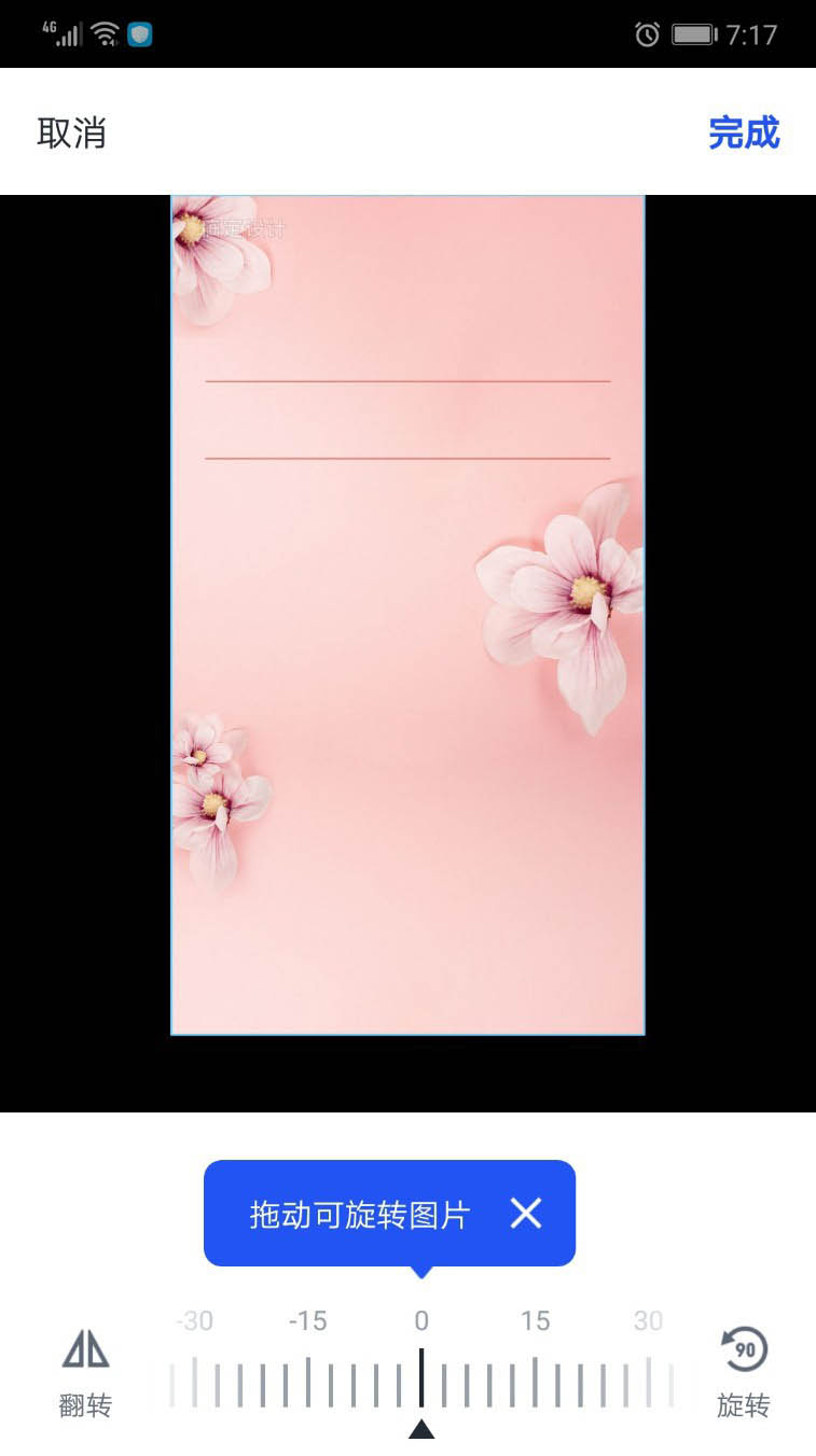 1、首先,我们打开软件,置入一张透明背景的花朵图片,再把背景用桃红色填充,从而凸显化妆品的美感效果。再导入红色的线条,让其位于图片的上方位置。