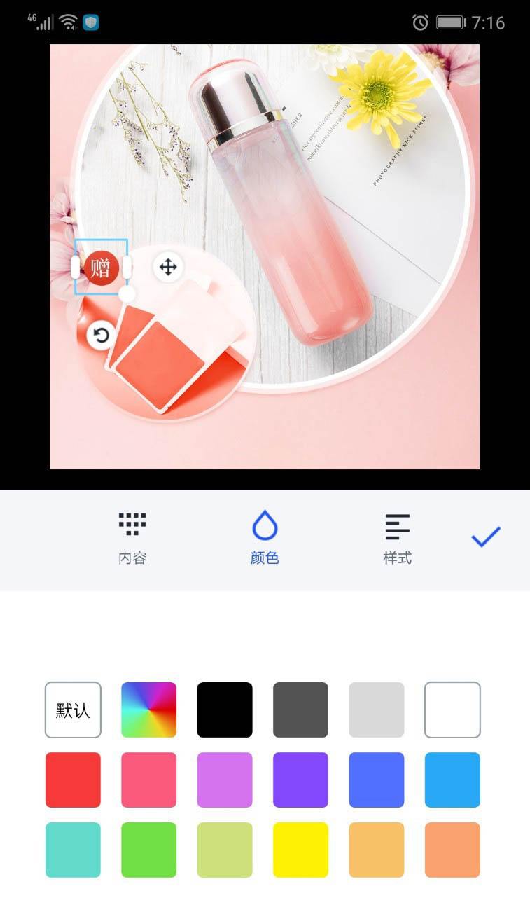 6、通过圆形工具在赠品图片的上方画出红色的圆形,再用白色的文字打出“赠”的字样。