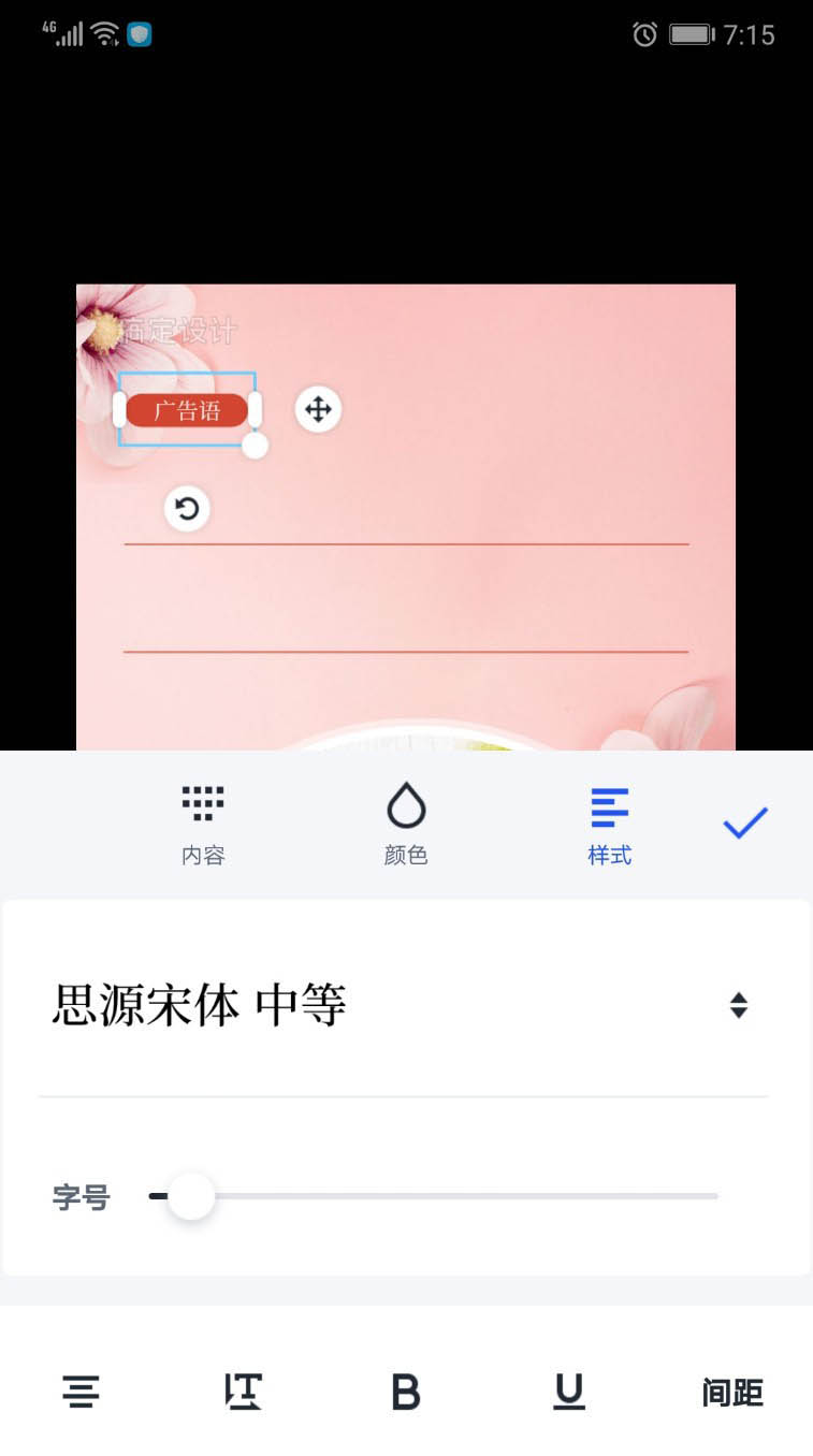 2、让两个红色的线条保持平行,设置好它们之间的间隔,我们在这里主要放上产品的名称与活动的内容文字。